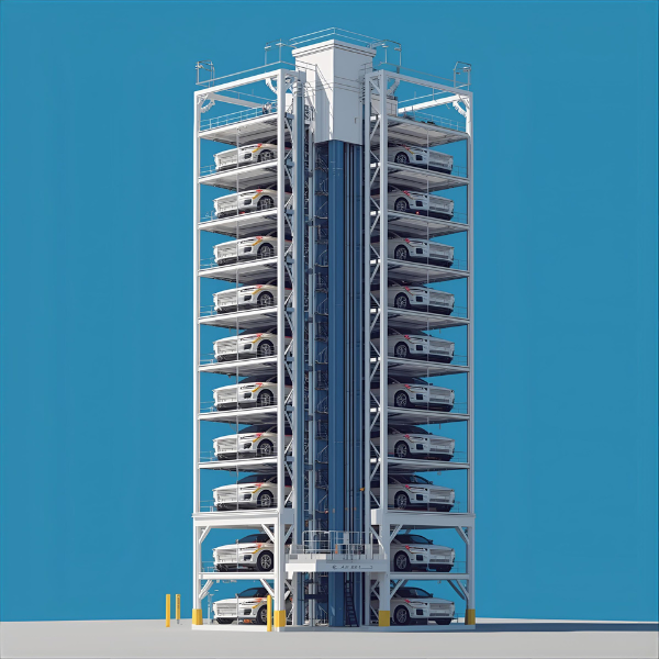 A fully automated tower car parking system uses vertical lifting technology to store and retrieve vehicles efficiently, maximizing parking capacity while minimizing land usage. It offers fast, safe, and space-saving parking with minimal human intervention.